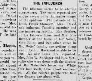 | From the November 21, 1918 edition of the Owingsville Outlook |